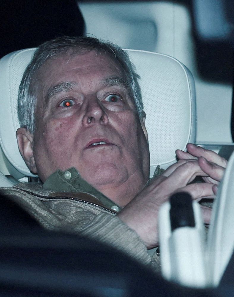 19日、英ノーフォーク州で、車両に乗せられて警察署を離れるアンドルー元王子(ロイター=共同)