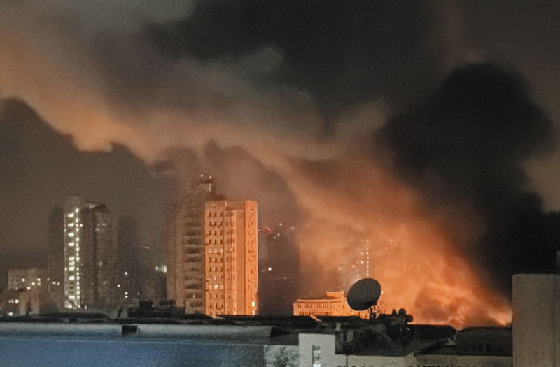 ロシアの攻撃を受け煙を上げる街=ウクライナ・キーウ市内で(ルスランさん提供)