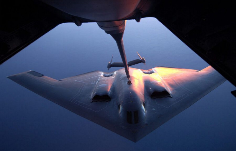 空中給油を受ける米空軍のB2ステルス爆撃機=2006年7月(AP=共同)