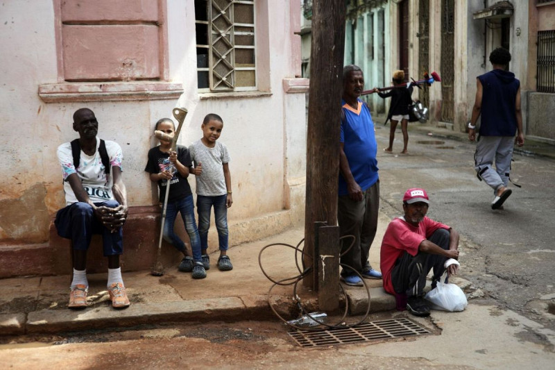 キューバの首都ハバナで、停電が続く中、道端で過ごす人々=17日(AP=共同)