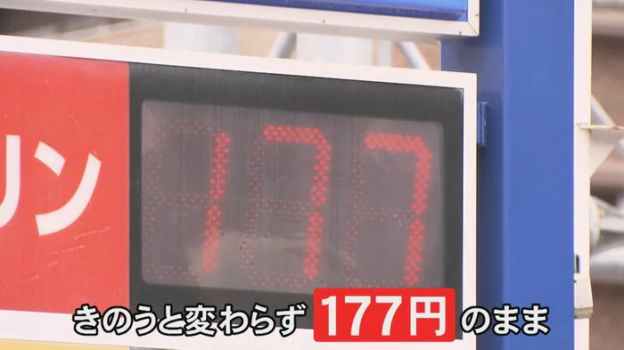 「19日午前10時時点で、レギュラーガソリンは1リットル177円と、昨日と変わっていません」