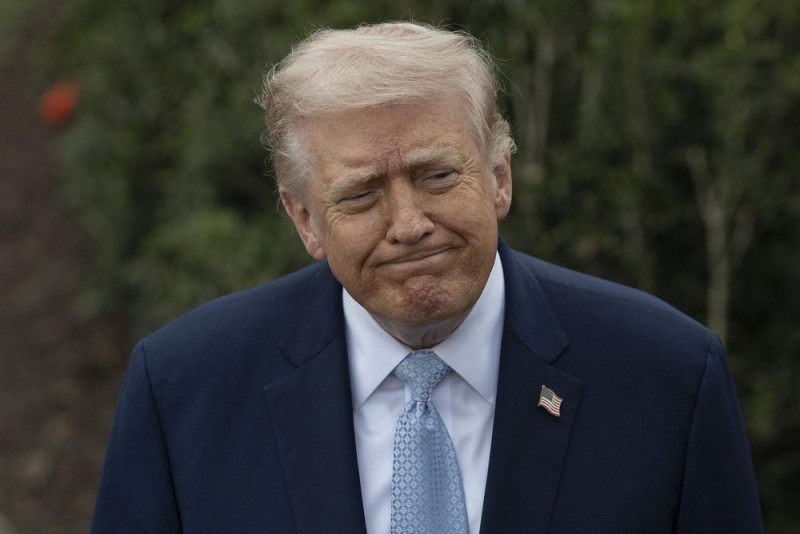 記者団に話すトランプ米大統領=20日、ワシントン(ゲッティ=共同)