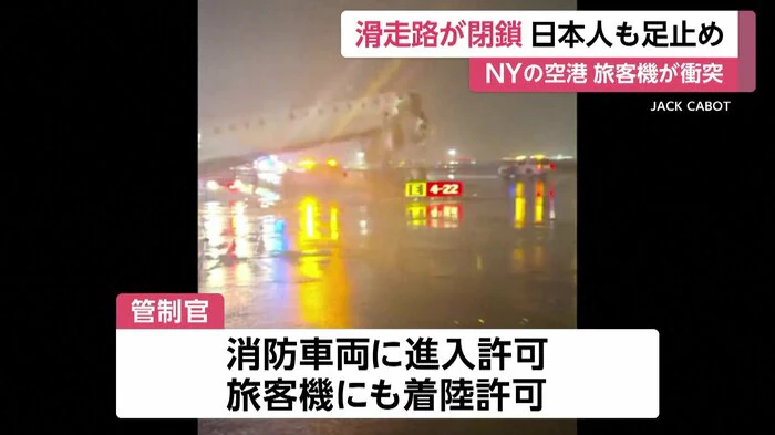 ニューヨークのラガーディア空港で起きた事故では操縦士と副操縦士が死亡し、日本人旅行客の足にも影響が及んだ。
