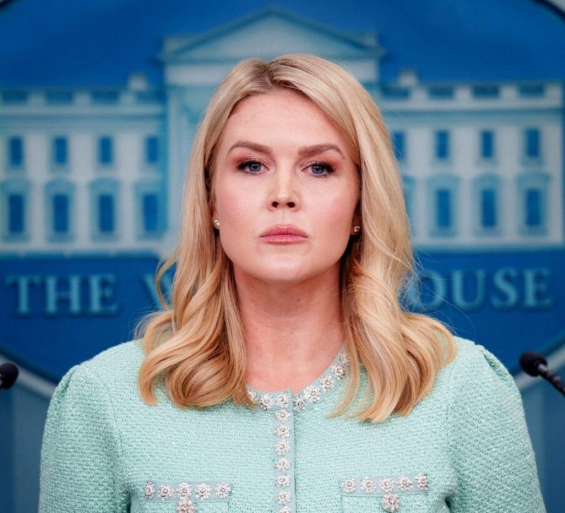 米ホワイトハウスのレビット報道官(ゲッティ=共同)