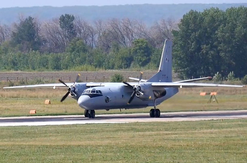 ロシア南部ボロネジ州で演習に参加する軍輸送機アントノフ26=2021年8月(ロシア西部軍管区提供・タス=共同)
