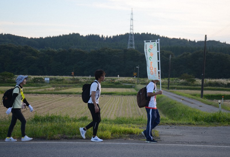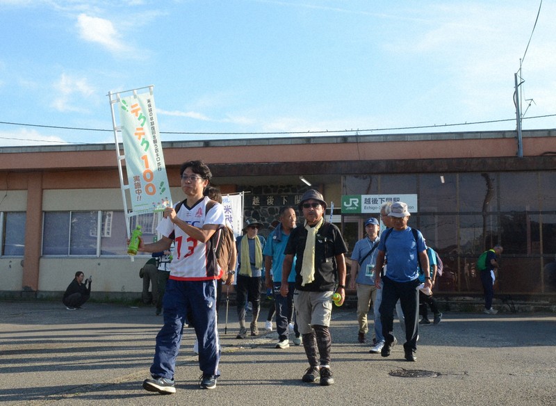 2022年8月の豪雨で被災し、一部区間で運休が続くJR米坂線の米沢駅(山形県米沢市)と坂町駅(新潟県村上市)間を歩くイベント「テクテク100」が9月27、28の両日に初めて開かれ、早期復旧を願う参加者たちが約94キロの道のりを2日間で踏破した。