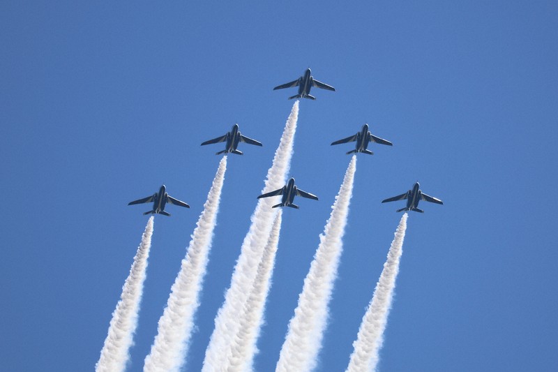滋賀県で開催された国民スポーツ大会は8日、同県彦根市の平和堂HATOスタジアム(彦根総合スポーツ公園陸上競技場)で総合閉会式が行われた。式中、選手の健闘をたたえ、航空自衛隊のアクロバット飛行チーム「ブルーインパルス」が会場上空などを展示飛行した。【長谷川隆広】