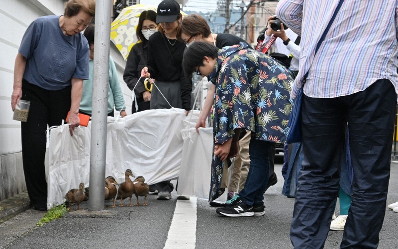 カモのお引っ越しにメディアも注目。いつしか近隣住民や子どもたちが楽しみにする恒例行事になった。「老後の楽しみ」と、1日3回カモの様子を見に来る人も。そうした「観客」の安全確保のため、信号操作まで実施して交通整理を手掛けてきた川端署には、「カモ担当」までいた。