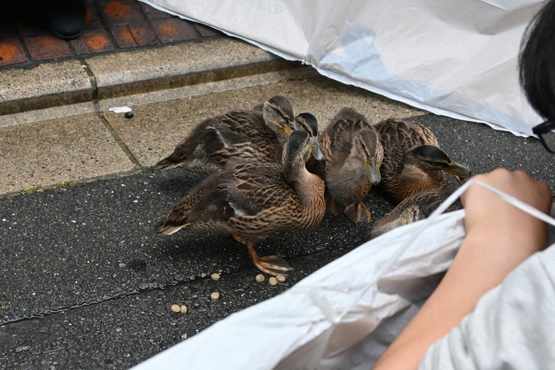 つまり「近くの鴨川まで、人々が引っ越しを手助けしてくれると期待して」カモはやってくると考えられるそう。親ガモ不在のため、ヒナをエサで引き寄せ、川まで連れ出した23、24年の引っ越しは、カモから見ればまさにその利点が生かされた形になった。