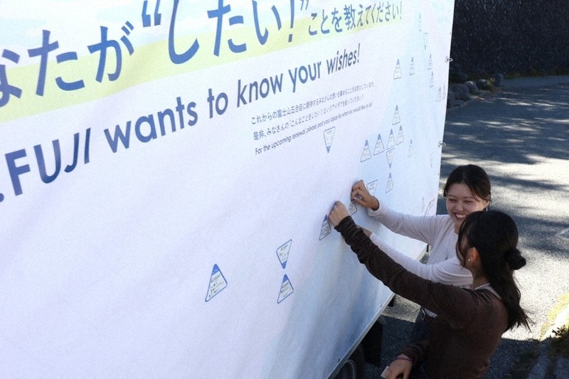 富士山の山梨県側5合目を再整備するため、県は17日、現地を訪れた観光客らに「5合目で何がしたいか」を記入してもらう意識調査を始めた。19日まで。