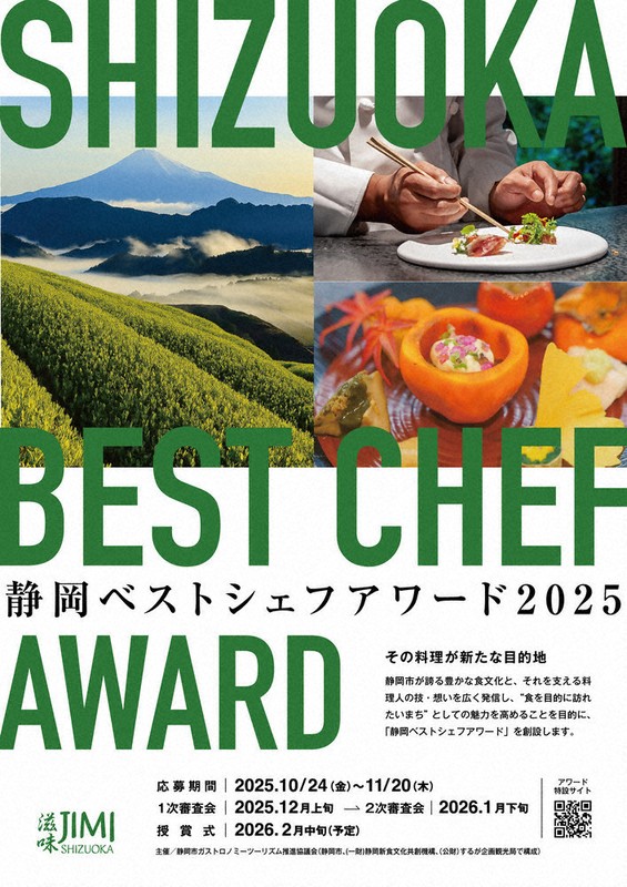 「JIMI」は滋味と地味をかけた造語。市は「南アルプスから駿河湾までの高低差がもたらす多様で豊かな食材があり、地域に根差した歴史と文化も有する静岡市を体現している」(観光政策課)として、風俗として食を楽しむ旅「ガストロノミーツーリズム」を象徴するキーワードに位置づけ、シェフアワードを企画した。