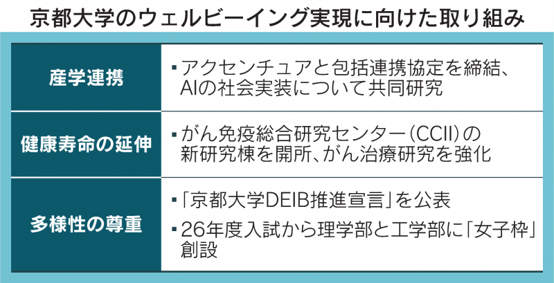 京都大学では幸福で健やかな個人や社会のあり方について産学連携で研究を進めている。その一環として2024年にコンサルティング大手のアクセンチュアと包括連携協定を結んだ。