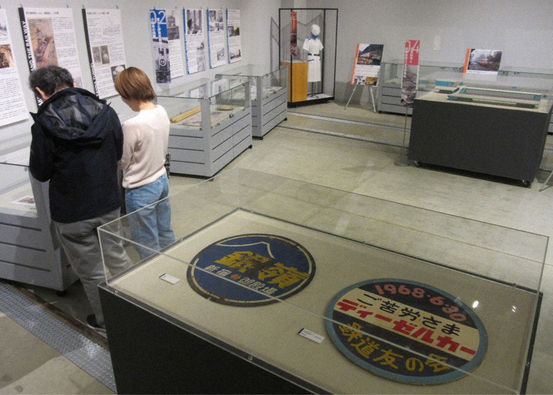 12月1日まで。同ミュージアムの入館料(中学生以上900円など)で観覧できる。銀嶺のヘッドマークや、歴代乗り入れ車両の模型、記念乗車券なども展示している。火曜休館。【佐藤浩】