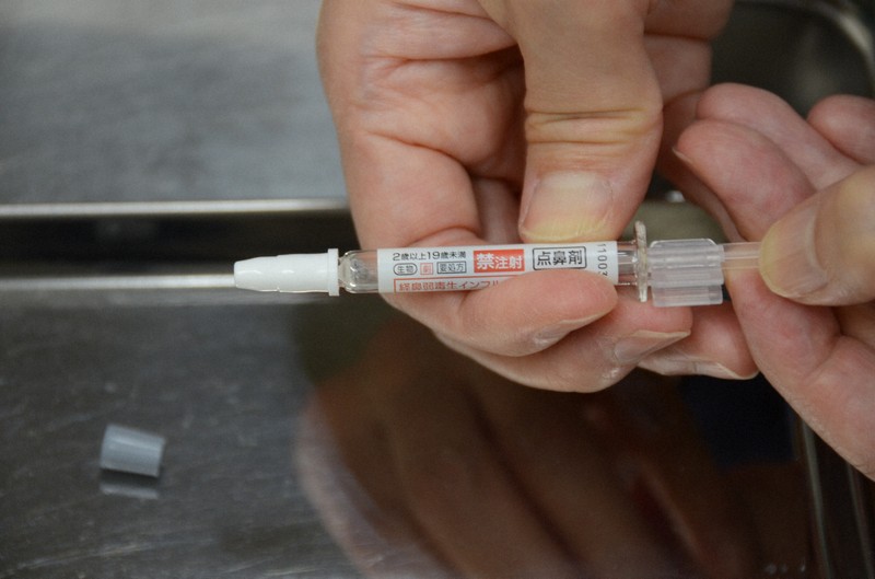 接種方法は、鼻腔に計0.2㎖(左右0.1㎖ずつ)を噴霧し、接種回数は1回で完了します。対象年齢は2歳以上19歳未満で、鼻水やせき、咽頭(いんとう)痛などの副反応が出る可能性があります。