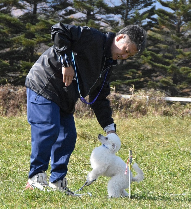 審査を受けたのは、トイプードル2頭、トイマンチェスターテリア、ビーグル各1頭。7日に北杜市で開かれた審査会では、シェパード、ラブラドールレトリバーなどの大型犬がひしめくなか、飼い主に抱かれて会場入り。人の足跡に残る匂いをたどり、その人の匂いが付着した布を探し当てる「足跡追及」などの実技をこなした。