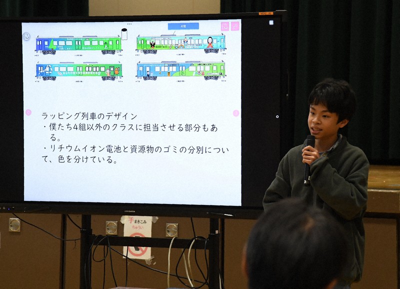 プレゼンを行った安田悠登さん(12)は「初めての経験だったが、ごみの分別に役立ったらいいと思う。デザインが採用された列車に乗ってみたい」と話した。【酒造唯】