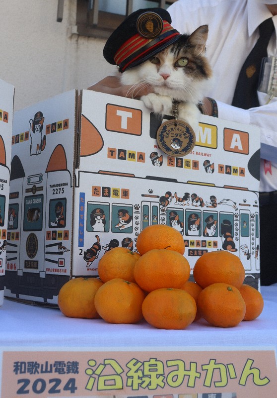 ニタマは同電鉄の親会社「岡山電気軌道」がある岡山市で生後約2カ月の頃に保護され、2012年に伊太祈曽(いだきそ)駅(和歌山市)の駅長に就いた。貴志駅の初代駅長の「たま」が15年に死んだ後、その役割を引き継いだ。