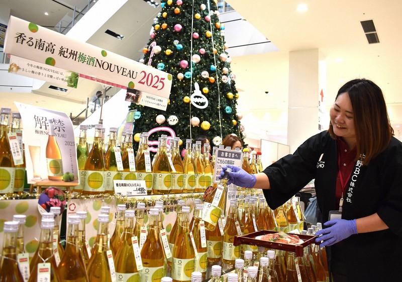 イオンモール和歌山(和歌山市)では30日まで、特設売り場で香る南高ヌーボーを売り出している。同社の仲原瑞希さんは「通常の梅酒よりも甘酸っぱい味わいが特徴。炭酸で割るとシャンパン風にもなるので、年末年始の食卓でぜひ味わってほしい」と話した。