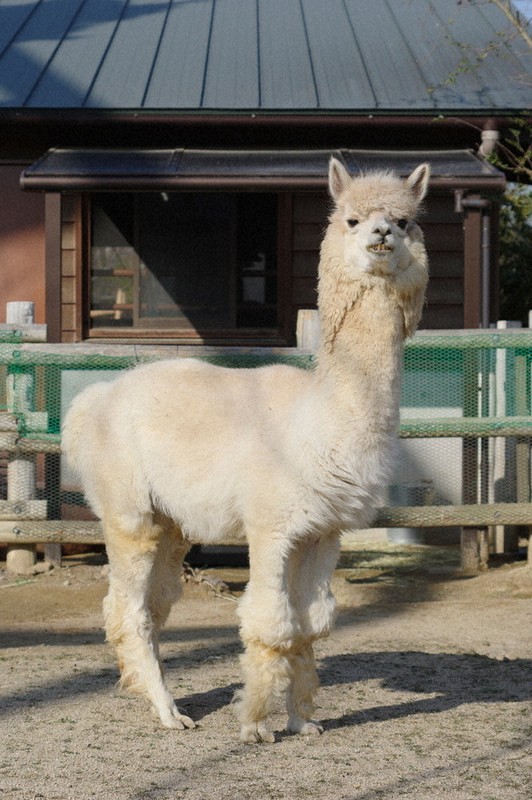 12歳の雄のアルパカ「タック」(頭までの高さ約1・2メートル、体重約42キロ)は、2016年の開園時からいる人気者だ。