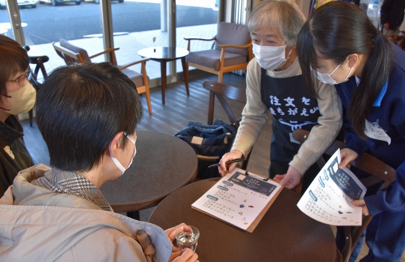 認知症の当事者が1日限定で店員になって接客する「注文を間違えるカフェ」が29日、盛岡市の喫茶店で開かれた。支援する地元の大学生や高校生とペアになって注文を聞き、配膳、片付け、会計を担当した。失敗しても寛容な店内は、笑いが絶えなかった。【山田英之】