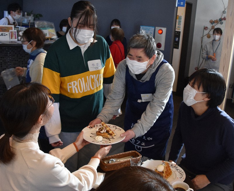 認知症の女性(88)は「働けることに感謝している。若い人と仕事をするのは勉強になる。自分も頑張ろうと思える」と笑顔だった。元バスガイドの田口弘子さん(84)は「しゃべるのが好き。みなさんと和気あいあいと話していると楽しい」と接客していた。かつて市内で喫茶店を営んでいた佐藤美奈子さん(76)は「近くの大学生たちが店に来てくれたことを思い出す。いろいろな人の表情を見て、声を聞いている時間がいい」と言う。