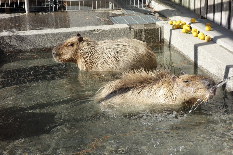愛知県豊橋市の豊橋総合動植物公園(のんほいパーク)で、冬の恒例行事「カピバラのお風呂」が人気を集めている。