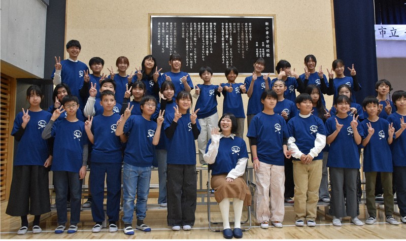 今年度開校した川崎市立新小倉小(幸区、児童数534人)で13日、市出身のロックバンド「SHISHAMO」のボーカル&ギター、宮崎朝子さんが作った校歌が初めて披露された。来校した宮崎さんの前で、全校児童が斉唱した。