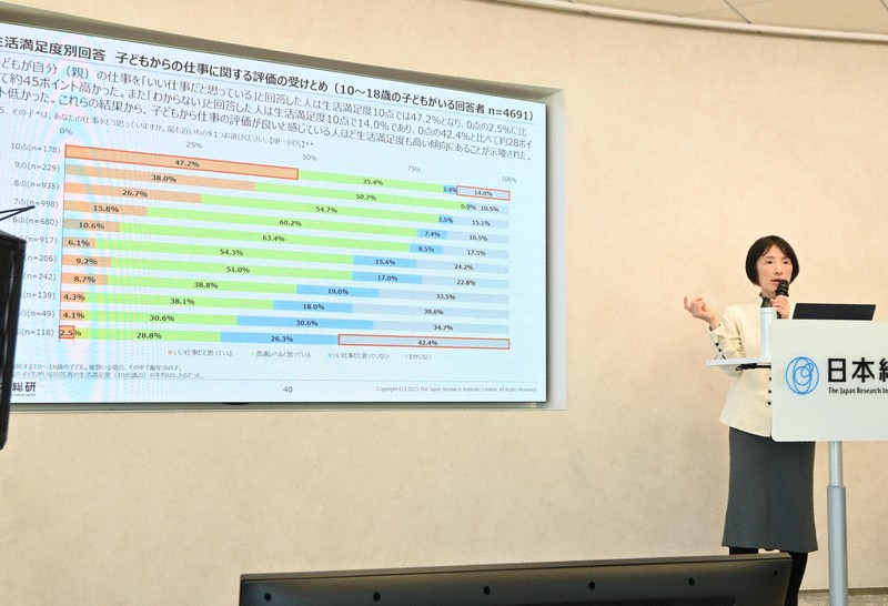 「子どもはあなたの仕事をどう思っていますか」と尋ねた設問では、「いい仕事だと思っている」と回答した人は、生活満足度が満点と回答した人の47・2%を占めた。