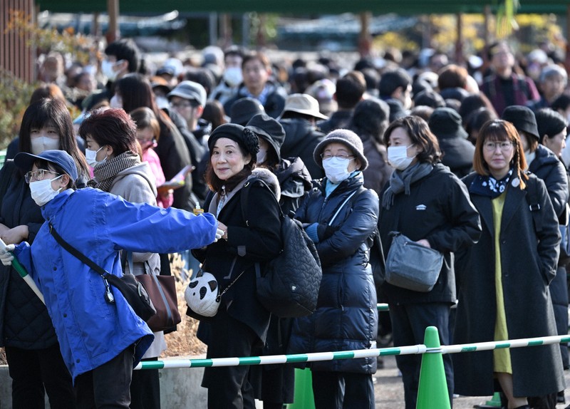 上野動物園(台東区)の双子のジャイアントパンダ、シャオシャオ(雄)とレイレイ(雌)の返還が発表されて初の開園日となった16日、多くのファンが訪れた。2頭それぞれを観覧するための行列は、午前11時過ぎに待ち時間が3時間半となった。