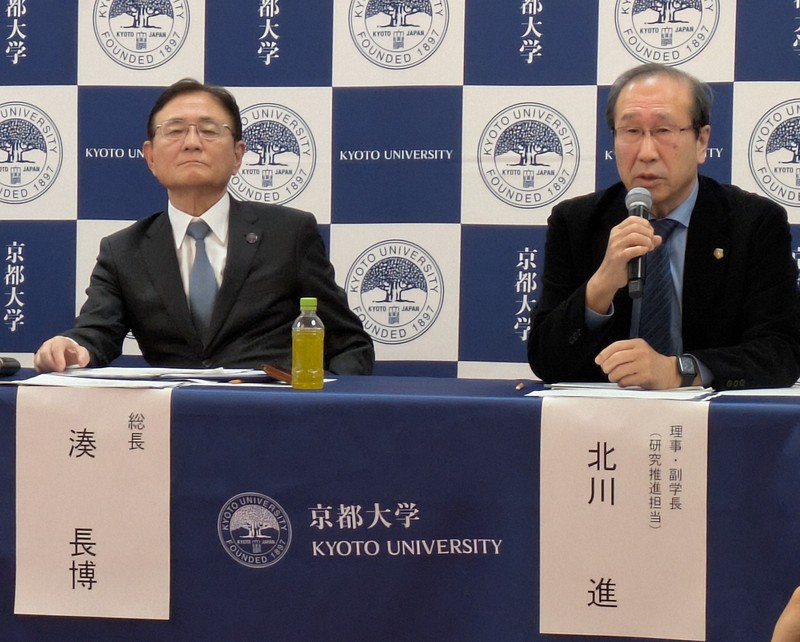 会見には4人の理事・副学長も同席。研究推進担当で25年のノーベル化学賞を受賞した北川進氏は、基礎研究を守ることとの兼ね合いを問われると「そういうところまで目が届き、息の長い研究をできる環境になると思う」と述べた。