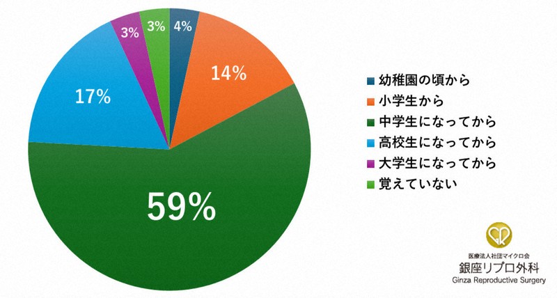 そして、違和感を覚えた時期として最も多かったのは「中学生」59%で、「小学生以前」計18%、「高校生」17%、「大学生」3%の順だった。