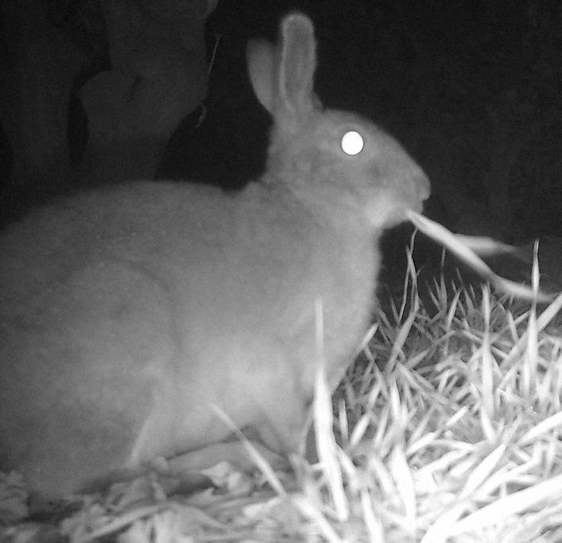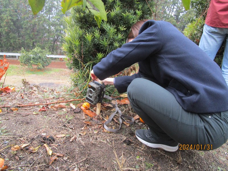 研究グループは2024年2月1日から3月22日まで、松山市下伊台(しもいだい)町の愛媛県果樹研究センターの園地内4カ所に赤外線センサーカメラを置いた。うち2台は地上110~120センチの生け垣の上、2台は生け垣沿いの地上15センチに固定し、動物の体温をセンサーで検知するよう待ち受けて撮影を続けた。