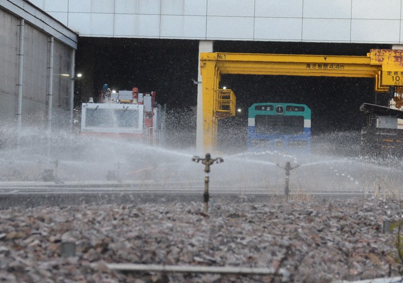 シュ、シュ、シュ、シュ――。スキーシーズンに合わせて営業するJRガーラ湯沢駅(新潟県湯沢町)。駅に隣接する保守基地では、スプリンクラー(散水機)が回転しながら一定のリズムで、レールに大量の水をまき続けていた。1メートル以上の積雪が当たり前のこの地域でも、新幹線が安全走行できるのは、この装置のおかげ。冬に新幹線に乗車していると「ボボボボ」と水が当たる音がするのはこのためだ。