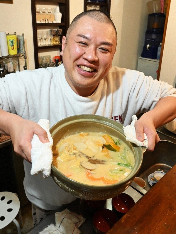 メンバーの飲食店主、日向高一さんは「恵幸川鍋は自由にアレンジできるのが魅力。大みそかは白菜、ニンジン、さつまいも、かぼちゃなど野菜たっぷりの鍋を用意します」と腕によりをかける。【村元展也】