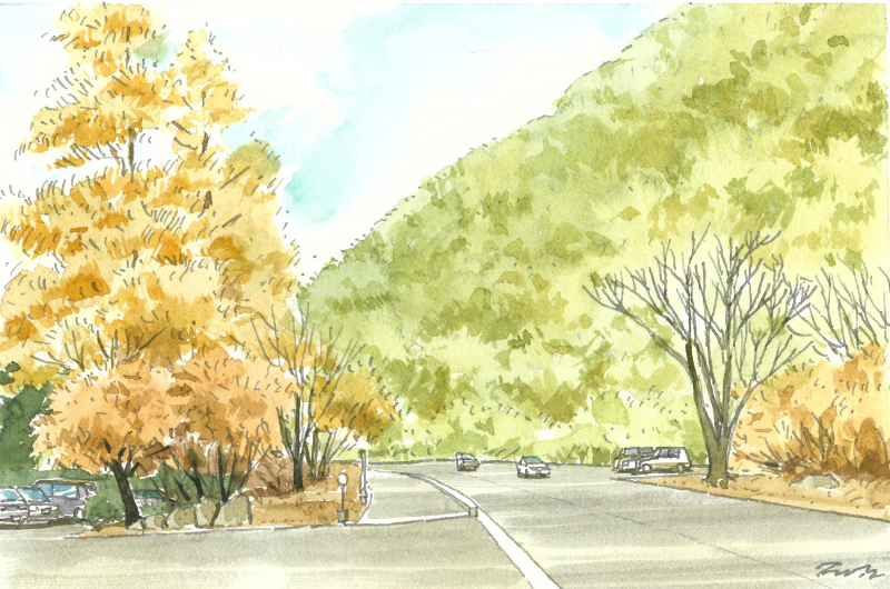 九州の街や自然、名所をイラストレーターの品原克幸さんが美しい水彩画で活写するコラムが「九州みちくさ帳」です。北九州空港や九州大学キャンパスなどの日常の風景も、「道」を意識した構図の水彩画を通して見ると、新鮮な発見があります。これまでに公開された記事の中から、注目度の高かった5本を紹介します。