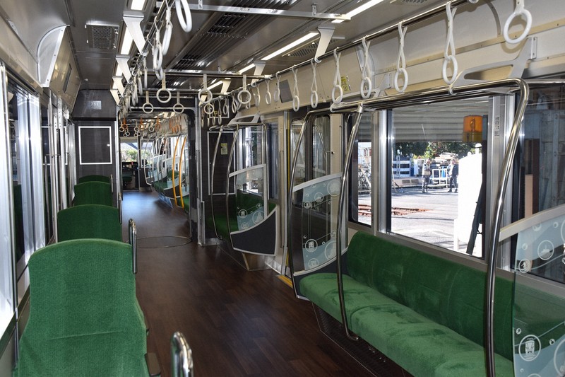 先頭車両は、傾斜した大型の前面ガラスなどが特徴で、乗客の視界が広がり眺望が楽しめる。座席は、正面に海が見えるように配置し、座席と床面は緑、青、ストーングレーの3色を採用している。また、車いすやベビーカーでの利用がしやすいスペースも確保し、緊急時に乗務員と話せる非常通報装置も設けた。