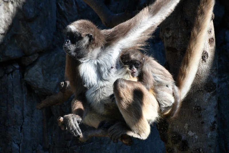 ブラウンケナガクモザルがみられるのは国内で3カ所で、「群れ飼育」を行っているのは国内で唯一。動物園では現在27頭を飼育中で、ミラクルは昨年7月5日に「ミーナ」(12歳/出産当時は11歳)が出産。双子として生まれた。