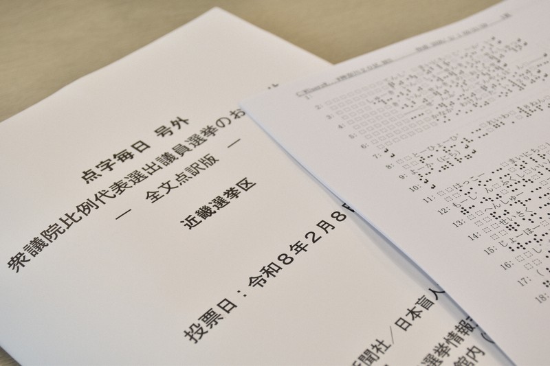 お知らせの制作などを担う社会福祉法人「日本点字図書館」(東京都)の常務理事、伊藤宣真(のぶざね)さん(69)は「最近はSNSなどでも情報を確認できるが、『お知らせ』には候補それぞれの意志が表れた文章に触れられるメリットがある。余裕のないスケジュールで衆院が解散すると、十分に情報を得られず不利益を被る人がいるということを忘れないでほしい」と話した。【小坂春乃】