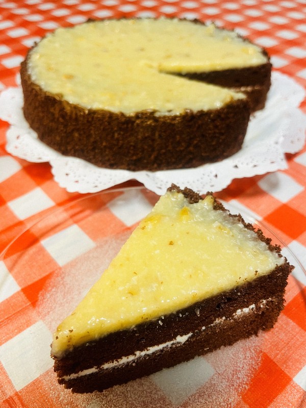 A チョコレートのスポンジにバタークリームを挟み、上にココナツのペーストを広げたケーキです。見た目も味もボリュームがあり、沖縄の人たちにとても人気があります。