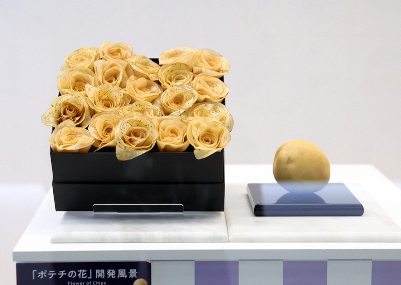 内部は三つのゾーンに分かれ、入ってすぐの「HAPPYゾーン」には、万博に出展した菓子アートを展示。市販の菓子で作った立体作品や企業が考えた未来の菓子などが目を引く。試食や企業のキャラクターと写真が撮れるコーナーが人気を集める。