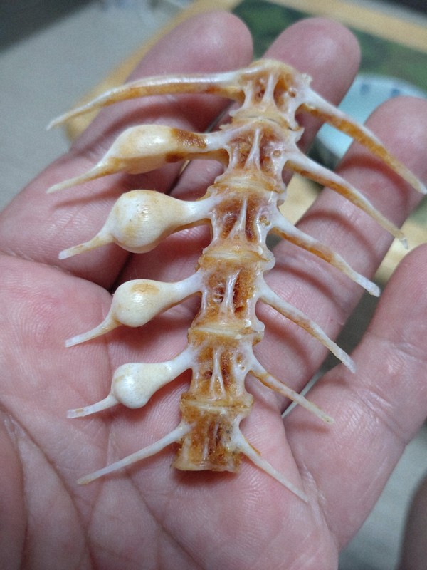 私が初めて鳴門骨を見たのは5年前。明石海峡で釣った1匹から出た。以来、明石や鳴門の個体でよく見かける。出現頻度は、私の経験では100匹釣って4、5枚(5%前後)。めでたい感じもするので、洗って干して宝物にしている。
