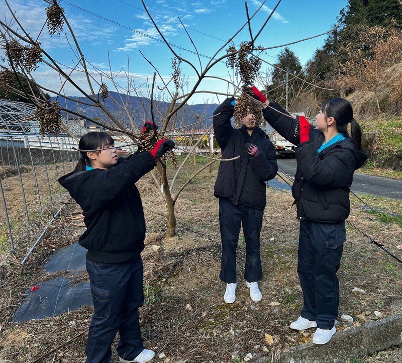 クローン苗の育成による増産を目指し、行政と共に接ぎ木研修会も開いてきた。現在は校内と大洲市、内子町の農地計約54アールで栽培。校内だけで年に約8キロの櫨の実を収穫できるようになった。