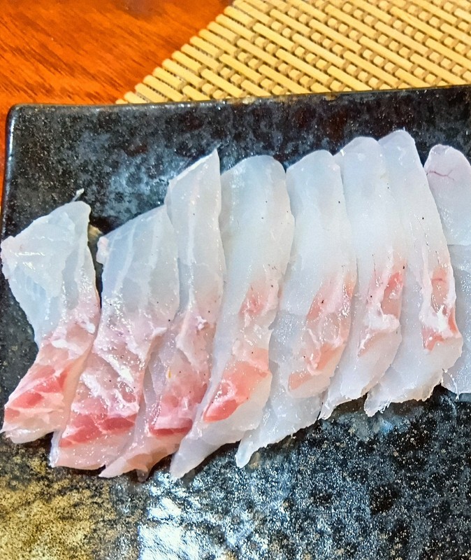 刺し身や皮付きのあぶりでいただくと、まことに美味。かむほどに、ハーブに似た上品な香りと強いうまみが口の中で混然一体となり、飲み込むと香りが鼻や口から外へ抜けていく。確かにキンメダイを思わせる。