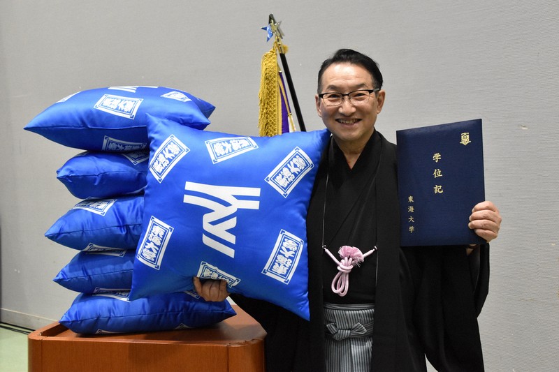 授業では、北海道根室市で昆布漁を体験したり、城の改修をテーマに卒業論文を書いたりして、久しぶりのキャンパスライフを味わった。「勉強は楽しかった。記憶力はマイナスに近いけど、理解力は当時の若い頃より上がっている。講義を聴いていても面白くて、大学の勉強は年を取った方が面白くて頭に入った」。必要だった残り28単位を取得して卒業にこぎつけた。