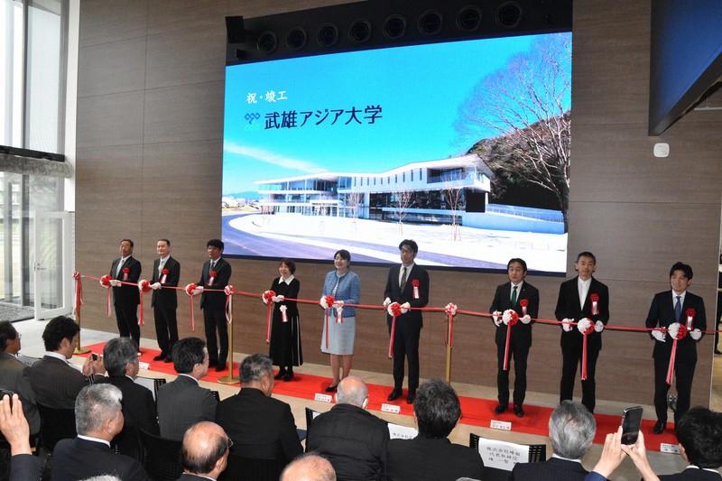 武雄アジア大は県内3校目、県西部では初の4年制大学。東アジア地域共創学部東アジア地域共創学科の1学部1学科で、観光・地域マネジメントと東アジア・メディアコンテンツの2コースを設ける。2月に完成したキャンパスの建設事業費は約30億1000万円で、武雄市が19億4800万円(県補助6億4900万円を含む)を補助する。