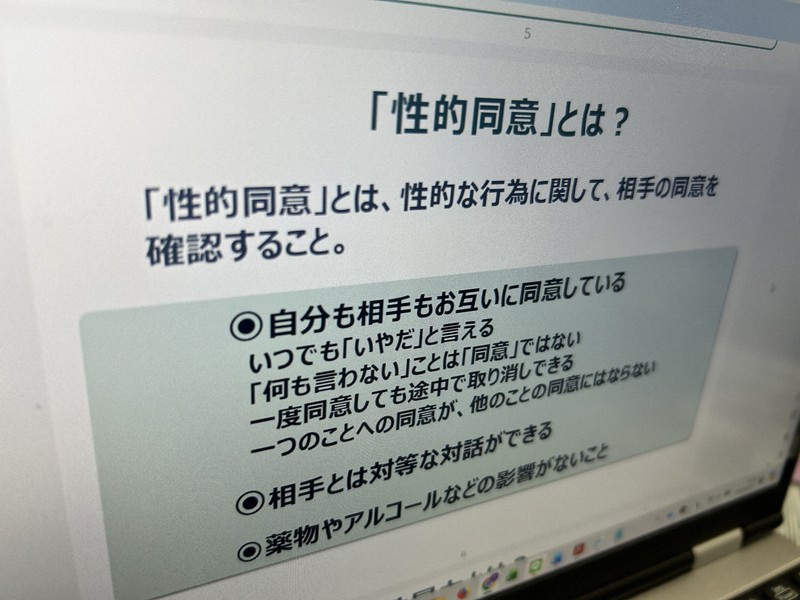 小学生向けの教材で「同意の基本」を扱った上で、中学生以上を対象とする教材で性的同意に言及。「いつでも『いやだ』と言える」「何も言わないことは同意ではない」と説明している。教員向けの指導の手引も刷新し、生成AI(人工知能)による性的ディープフェイクなどに触れている。