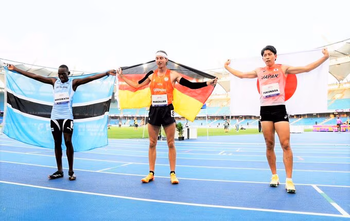 福永は前半から軽快に飛ばすと、最後の直線に入るまでトップをキープ。しかし、ゴール直前に追い上げてきたドイツのマックスに交わされ、わずか100分の3秒差で2着に入った。福永は大会5日目に行われた走幅跳に続き、2個目の銀メダル獲得となった。