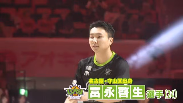 10月4日、IGアリーナで行われた名古屋対北海道の開幕戦。クラブ記録となる1万3000人の観客が特に注目したのが、レバンガ北海道に所属する名古屋市守山区出身の富永啓生選手(24)。