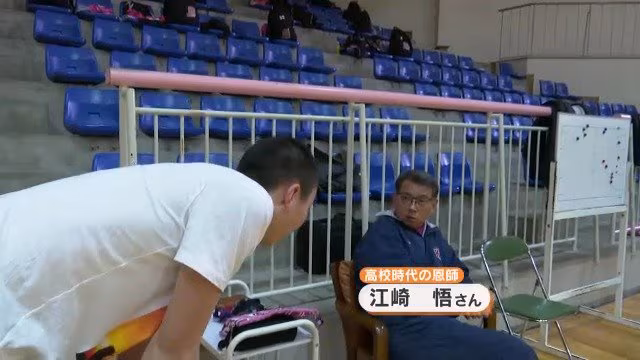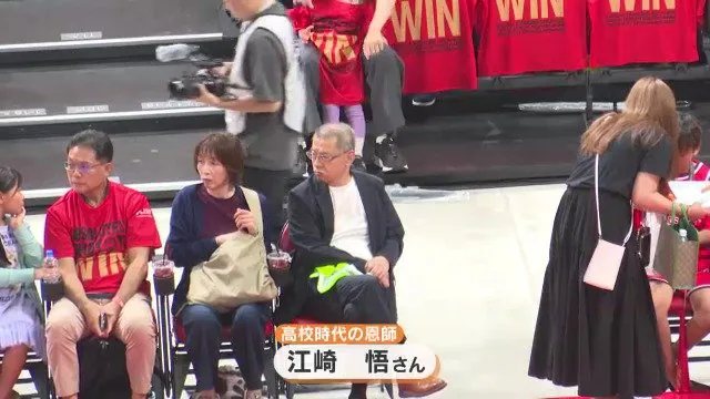 IGアリーナで凱旋デビューとなった富永選手のために、愛知・桜丘高校時代の恩師、江崎悟さんも会場に駆け付けました。