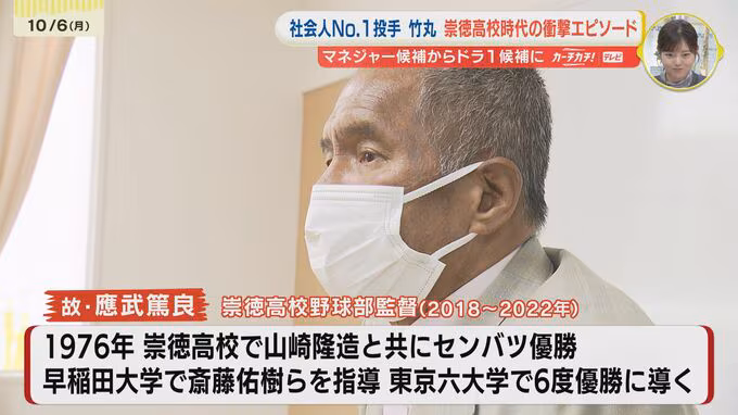 竹丸投手が2年生の夏、應武篤良さんが母校の監督に就任したことで、選手としての未来が開けたのです。